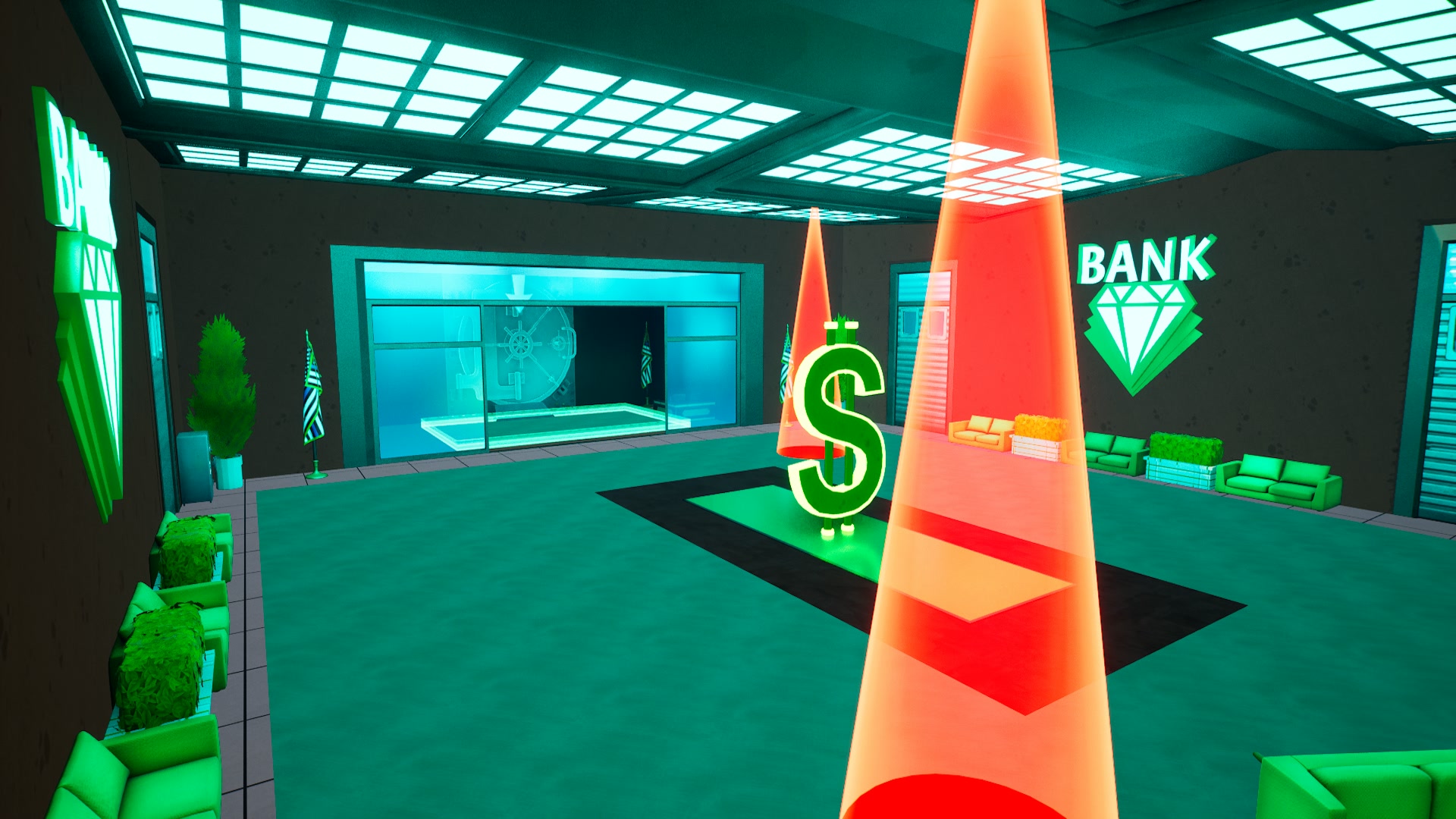 🤝 1-4 players - do it alone or plan the job with your crew 🚨 23 ROOMS - highly secured & patrolled by guards 💸 Earn CA$H by eliminating guards 💥 Invest CA$H into upgrades for better weapons & powerups! 🎲 Choose between 3 unique perks after each room 🏆 Get the fastest Heist time and be first on the leaderboard!