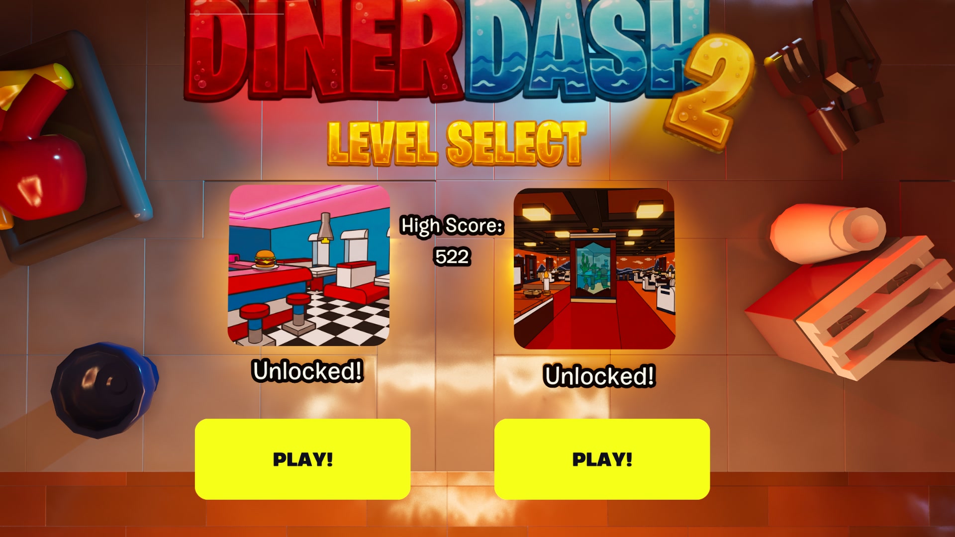 ✨ Hints on the billboards!🌊 Cook and dash in the all-new Level 2 Seafood Diner! 🔥 Watch the stove closely to avoid burning the food ⏩ Skip cooking timers to race through orders instantly ⭐ Become the ultimate chef and beat your high score! 🛎️ Master the new mechanics & deliver fresh catches! 🏁 Prove your skills in this fast paced arcade sequel! 💫 Optimized for mobile!